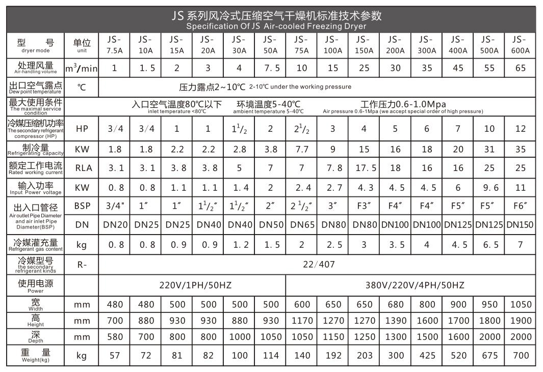 Brand:JUCAI Model:JS-7.5A Exhaust volume:1m3/min Compressed medium:Air Working principle:Air Dryer Performance:Low noise, power saving